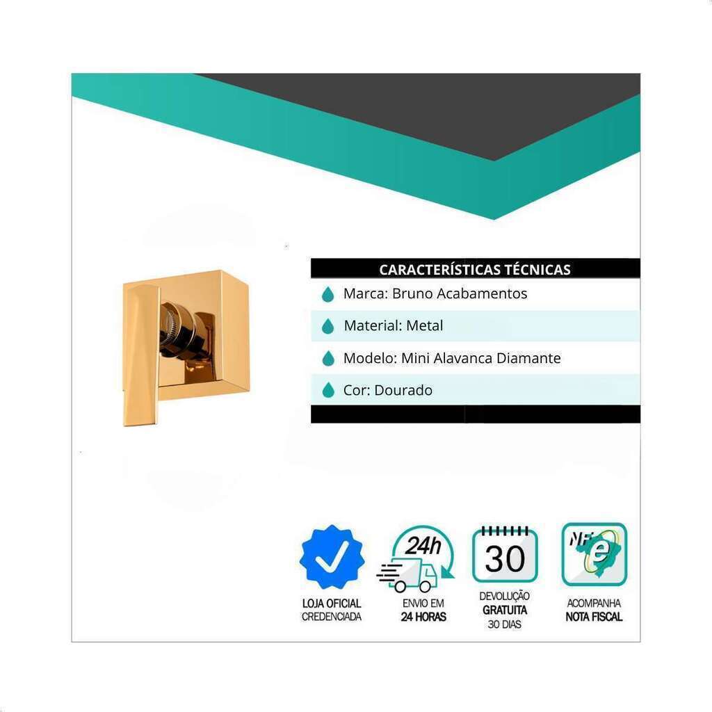 - 01 Acabamento de Registro Mini Alavanca Diamante em Metal e ABS Dourado