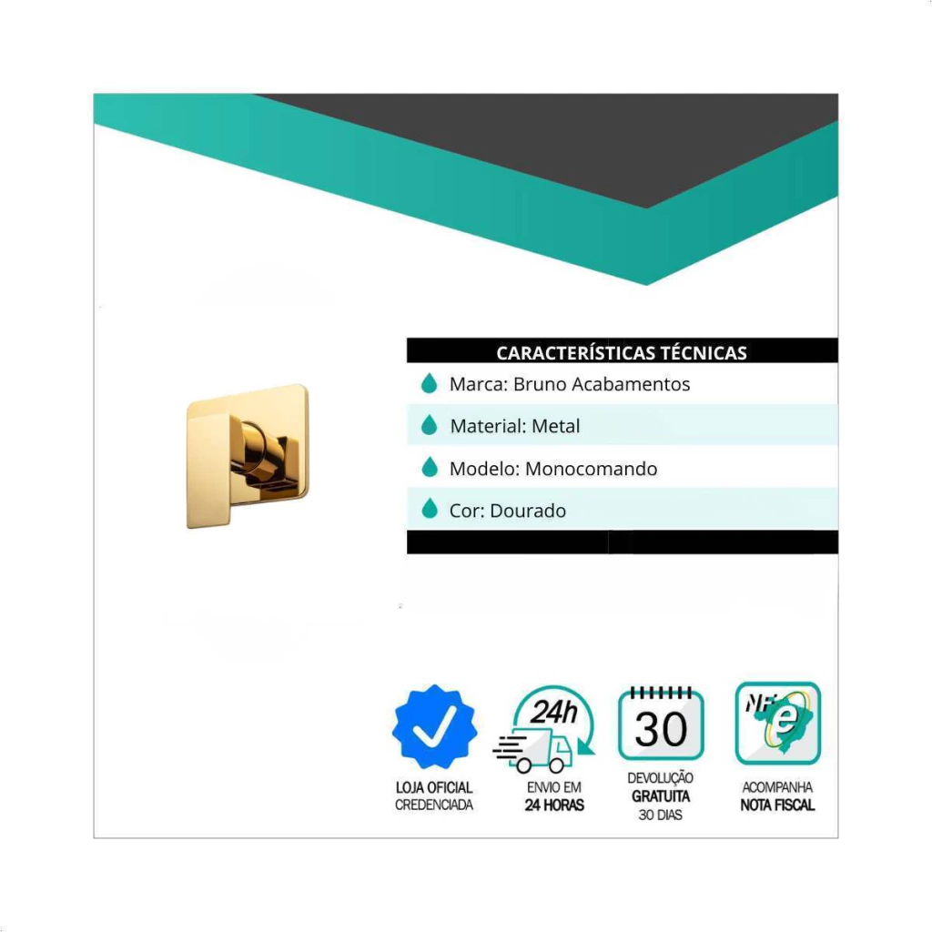 Conheça o acabamento de registro monocomando Fast Quadrado da Docol. Com um design de linhas retas e acabamento dourado brilhante, o produto é feito em metal.  Compatível apenas com 3/4. O sistema monocomando permite controlar a temperatura e o fluxo de água de forma prática, utilizando apenas uma alavanca.