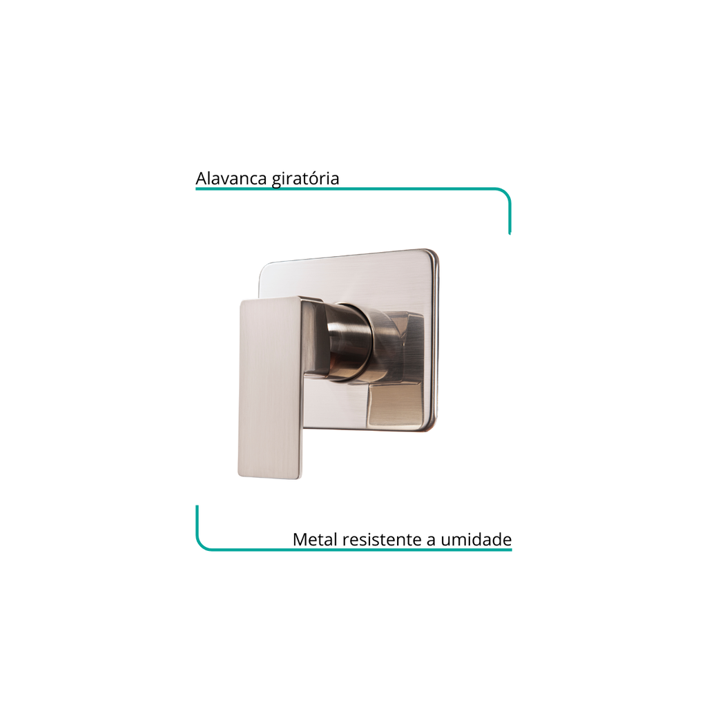 Conheça o acabamento de registro Alavanca Quadrada da Bruno Acabamentos! Desenvolvido em latão e Zamac pintados em pintura escovada, oferece proteção contra umidade e corrosão. Além disto, a compatibilidade é exclusiva para Monocomando Docol apenas para 3/4. O acionamento é 360º para controle da temperatura da água, e sua instalação é simples e descomplicada.