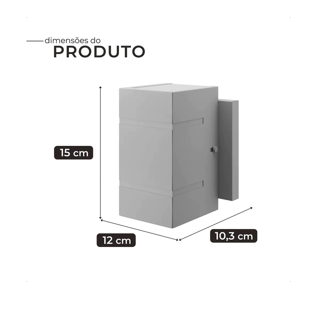 Desenvolvida em vidro e alumínio com uma pintura tecnológica, a Arandela de Parede conta frisos internos para decoração e sua fixação é traseira por parafusação. A saída de luz é direcionada para cima e para baixo, mas o produto não acompanha lâmpada.