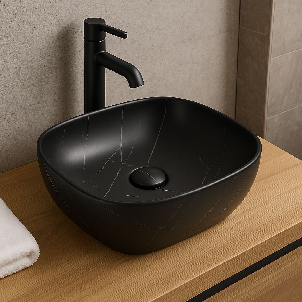 Eleve o estilo da sua cozinha com a deslumbrante Cuba de Louça Arredondada de 37cm, com um elegante acabamento em mármore creme, modelo CC1013-2.