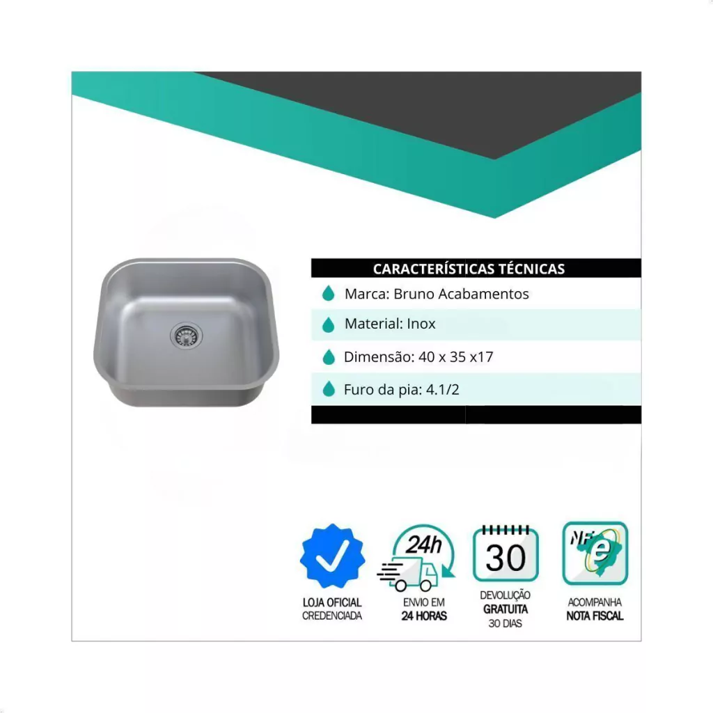 1x Cuba Ghelplus Inox N3 40x35x17 Escovado 4.1/2