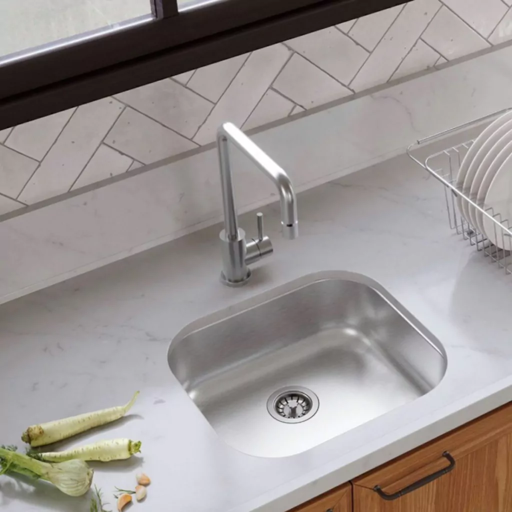 Seu design ergonômico inclui bordas cuidadosamente arredondadas, facilitando a limpeza e minimizando o acúmulo de sujeira. A instalação é versátil, permitindo que seja montada sobre balcões ou embutida, adaptando-se perfeitamente às necessidades do espaço. Combinando estética sofisticada e funcionalidade robusta, a cuba GHELPLUS INOX N3 é uma escolha ideal para quem busca qualidade e praticidade na cozinha.