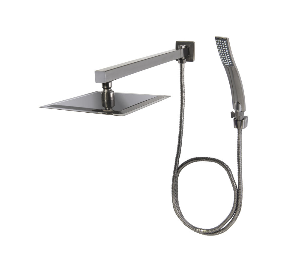 Conheça agora a Ducha Bruno Acabamentos! A ducha Grafite Escovada conta com cabeçote de 20x20 cm para uma distribuição uniforme da água e um Desviador integrado para alternar entre ducha principal e ducha manual (chuveirinho). Conta com crivos de saída de silicone, que ajudam a evitar o acúmulo de resíduos e calcário. Pode também ser utiizada com aquecedores de água. Sua pintura cataforese conta com alta resistência a umidade e a corrosão, que garante vida longa útil ao objeto.