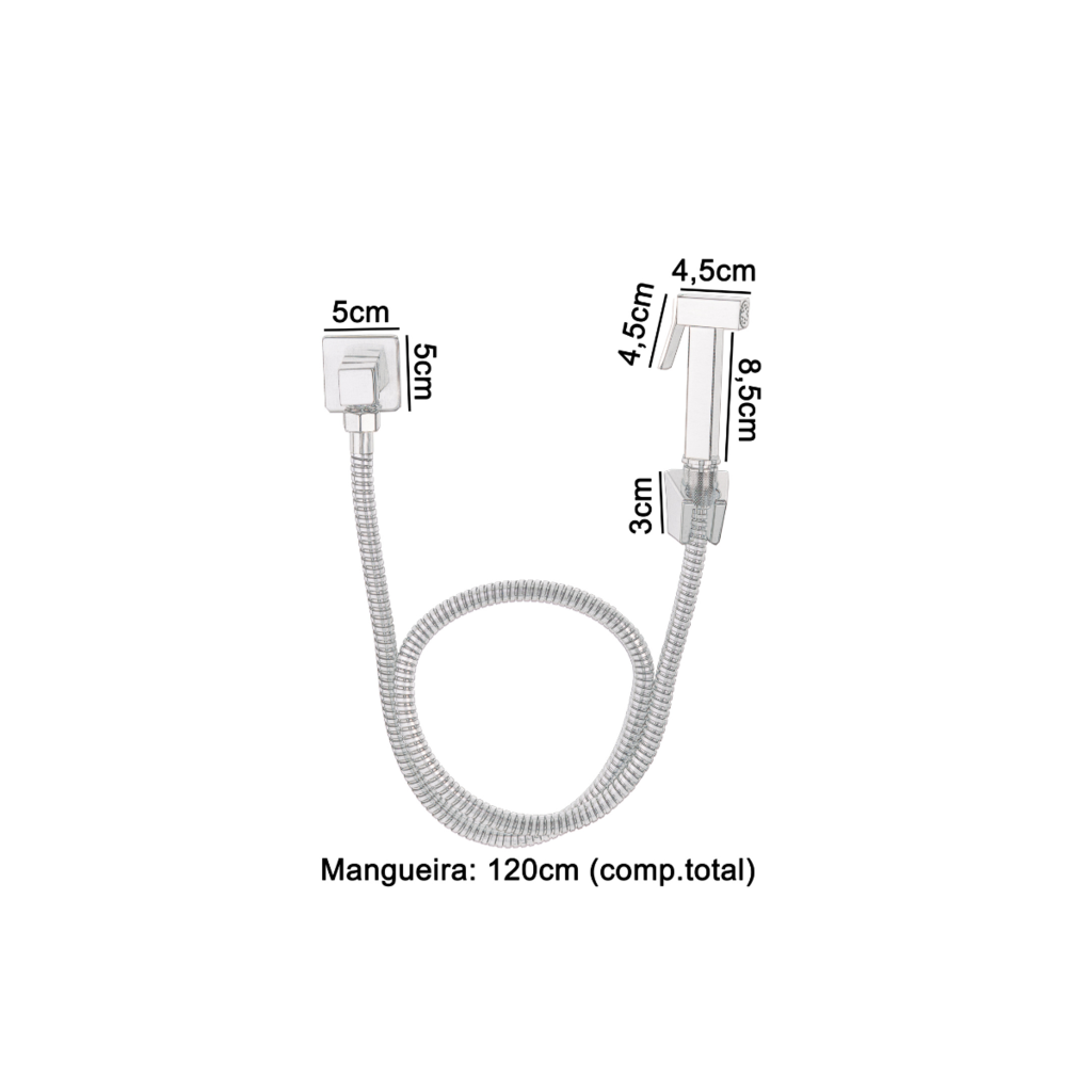 O kit acompanha engate flexível, suporte em ABS e conexão para o encanamento. É seguro para ambientes úmidos, conta com uma mangueira resistente com revestimento interno em silicone, garantindo mais durabilidade e higiene no uso diário.