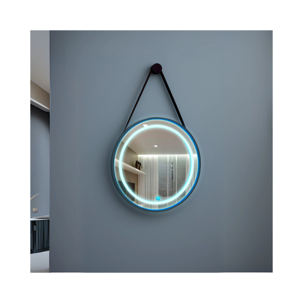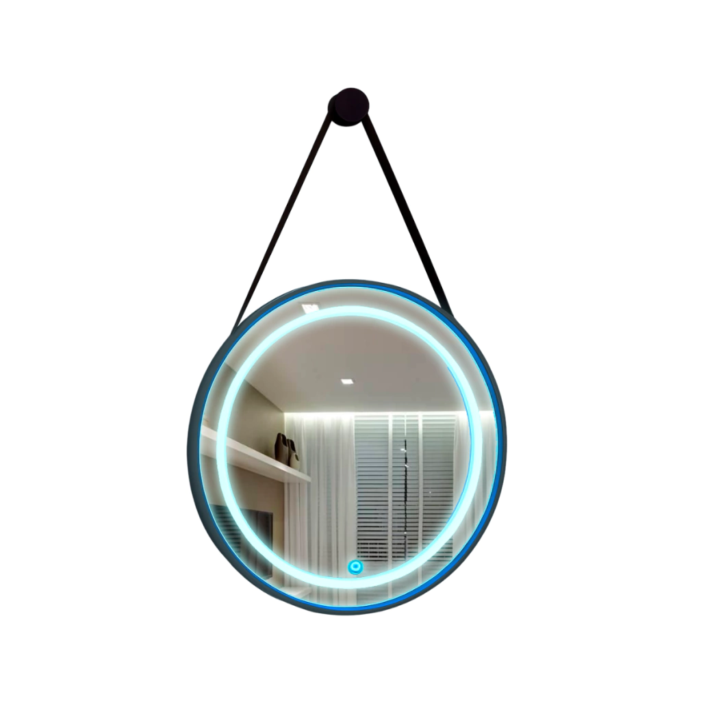 Este produto foi desenvolvido em espelho, moldura em couro preto e um led. Com formato retangular, altura de 80 cm e largura de 60cm. Fornece nitidez, qualidade e resistência a ambientes mesmo com umidade.