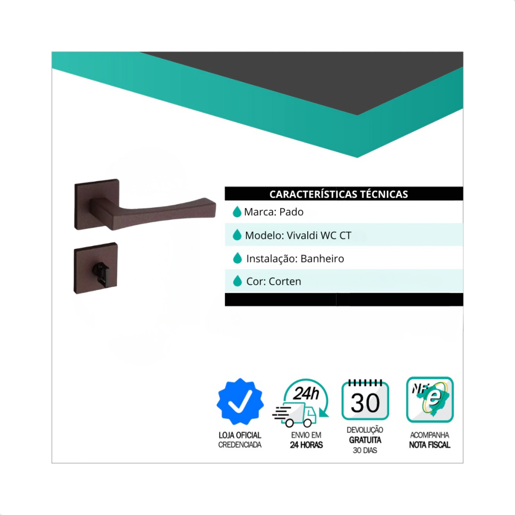 1x Fechadura Pado Vivaldi Corten Banheiro