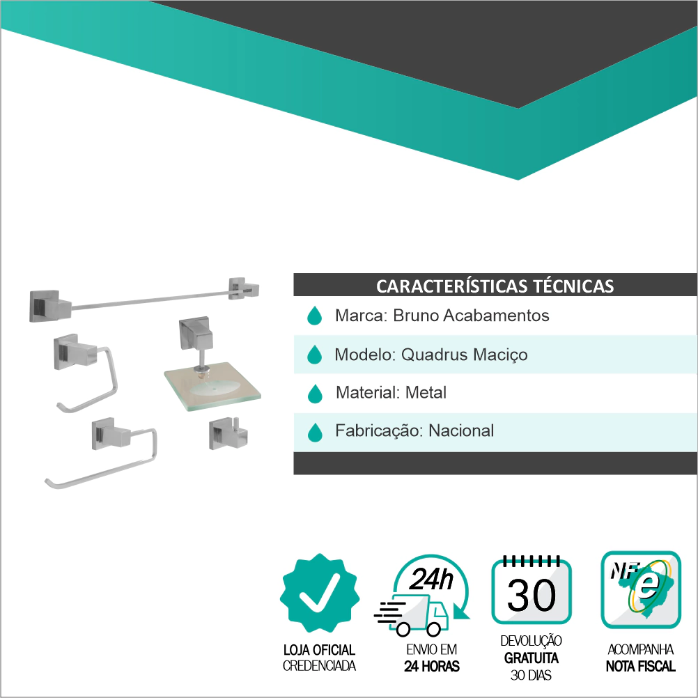Todos os acessórios são fabricados no Brasil, com materiais de alta qualidade (metal), garantindo durabilidade e resistência à umidade. O design moderno e elegante complementa qualquer estilo de decoração, adicionando um toque de requinte ao banheiro.