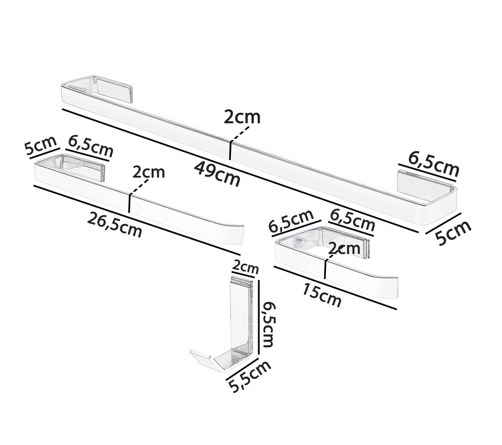 Conheça o kit de acessórios para banheiro de modelo Athena, na cor escovada. Desenvolvida em vergalhão com pintura eletrostática, dos produtos contam com camadas extras anti avarias para que seu uso seja seguro. A fixação dos itens deve ser feita por parafusação, além de ser muito discreta pela possibilidade em esconder os parafusos, o kit em geral acompanha 01 papeleira, 01 porta toalha de banho e um de rosto e 01 cabide para toalhas.