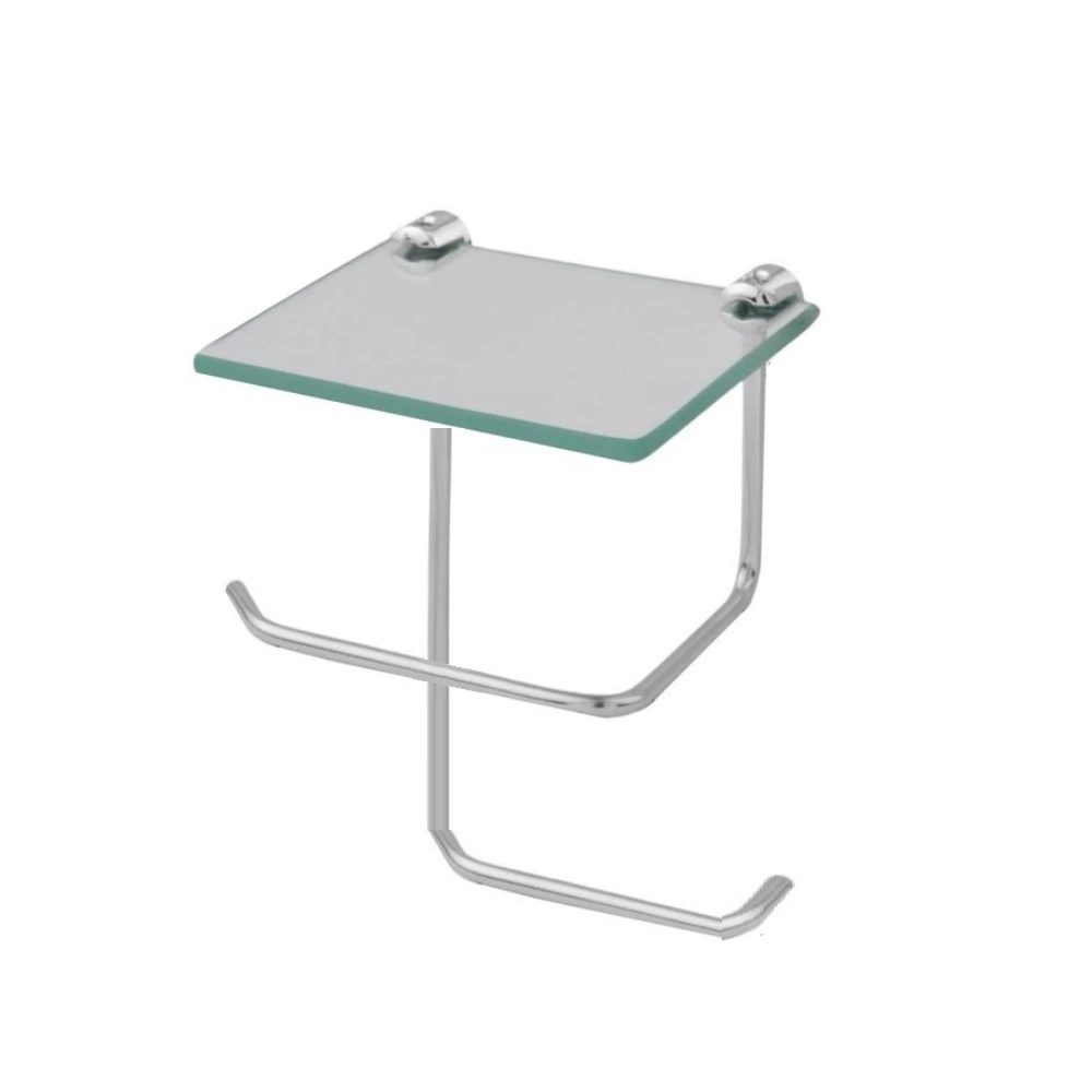 Porta Papel Higiênico Duplo com Porta Objetos – Vidro e Metal