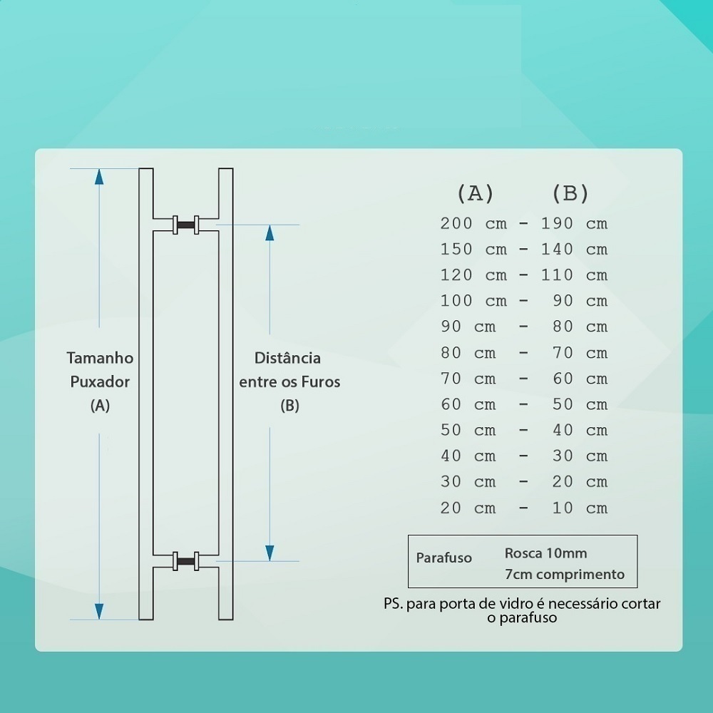 O puxador modelo barra chata da Bruno Acabamentos foi desenvolvido em alumínio maciço, anticorrosivo e resistente a sol, chuva ou maresia. Serve para os dois lados da porta, e pode ser utilizado em todos os modelos (pivotante, comum, de alumínio, madeira ou vidro).
