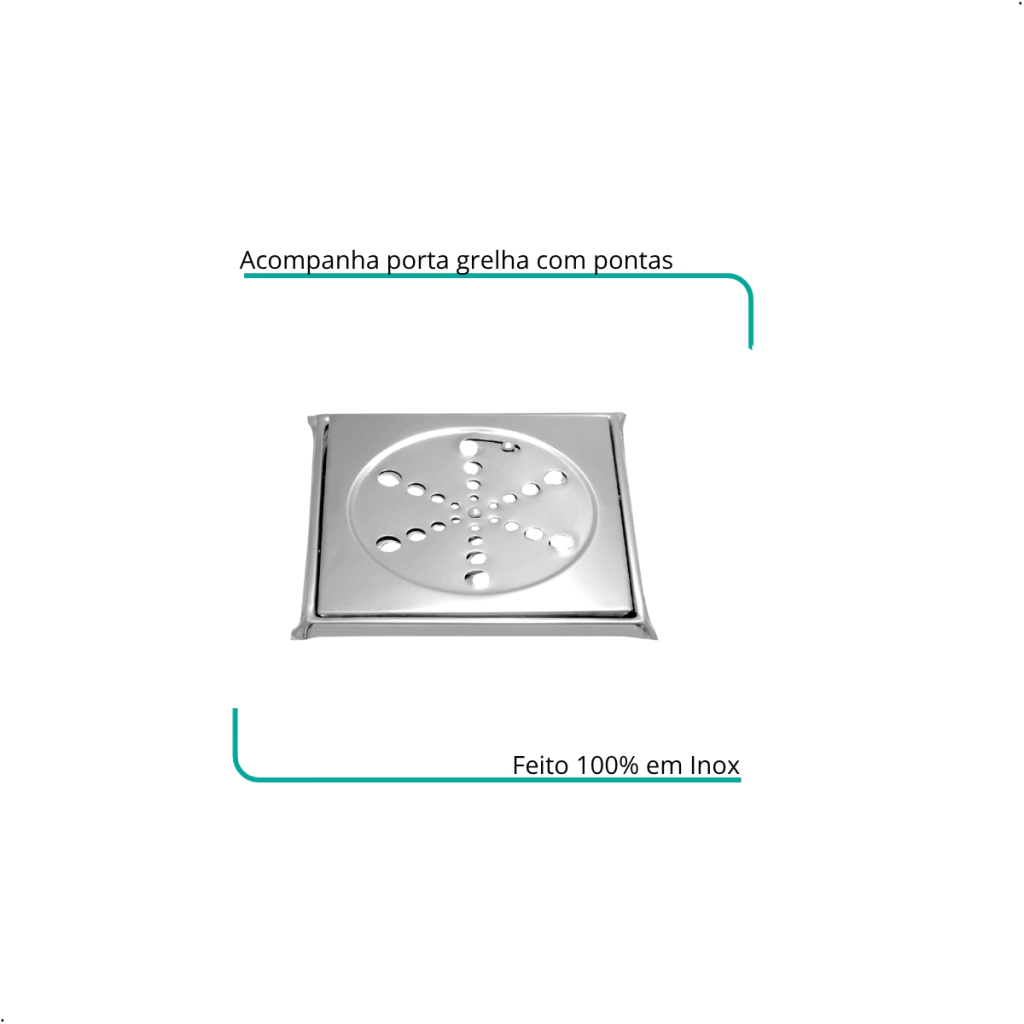 Feito em inox, esse ralo garante alta resistência e durabilidade mesmo em áreas de grande uso. Conta com um sistema rotativo abre e fecha, desenvolvido especialmente para bloquear a passagem de insetos e odores desagradáveis. Com medida de 10x10, é uma solução prática e versátil para áreas internas e externas.