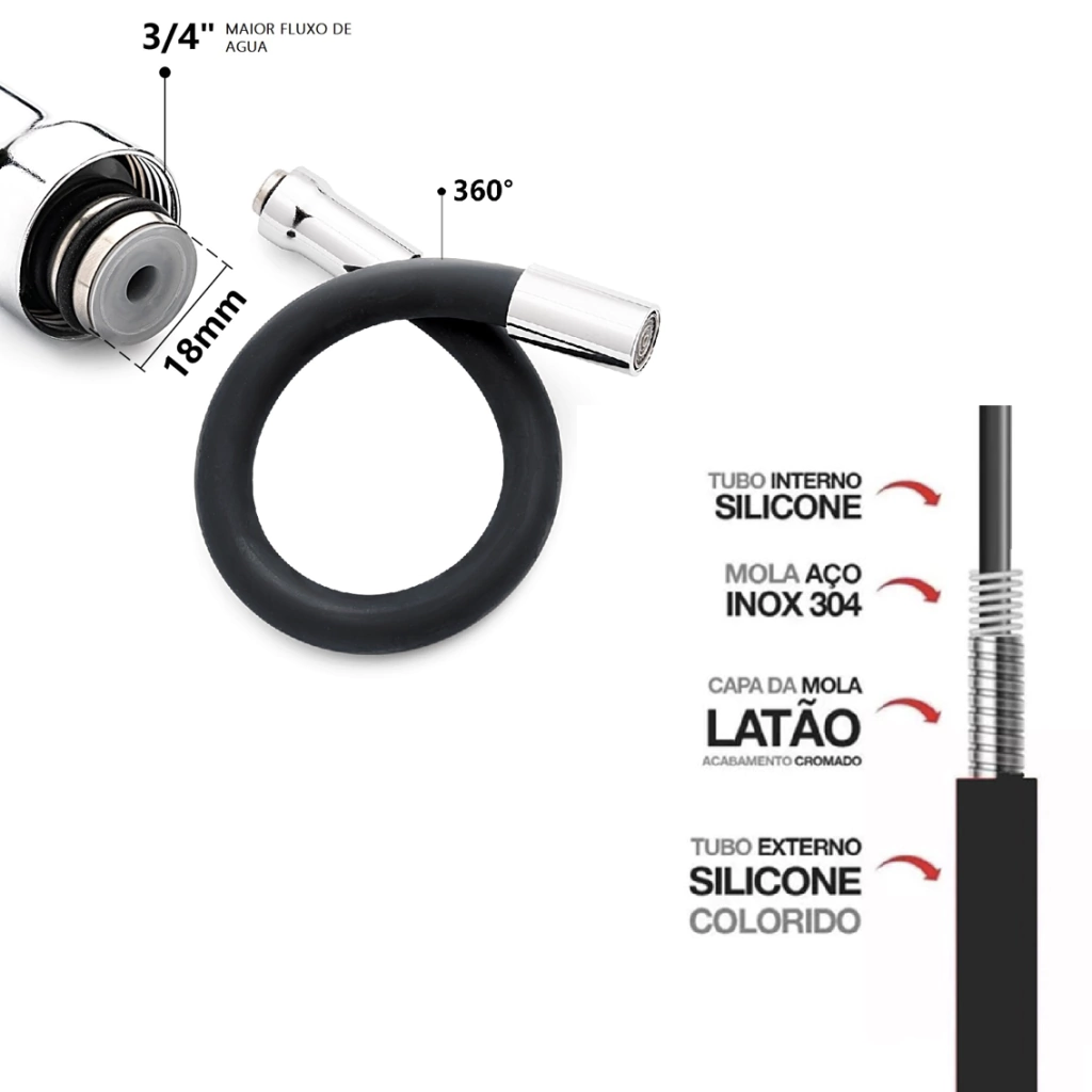 - 01 Torneira Bancada Base Quadrada Silicone - Preto