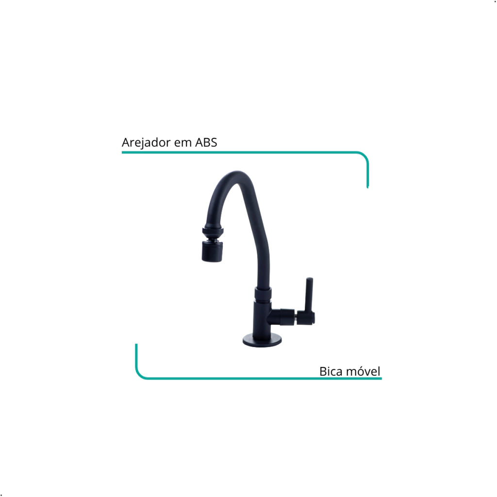 01 Torneira de Bancada C/Arejador e Articulador - C61 Preto