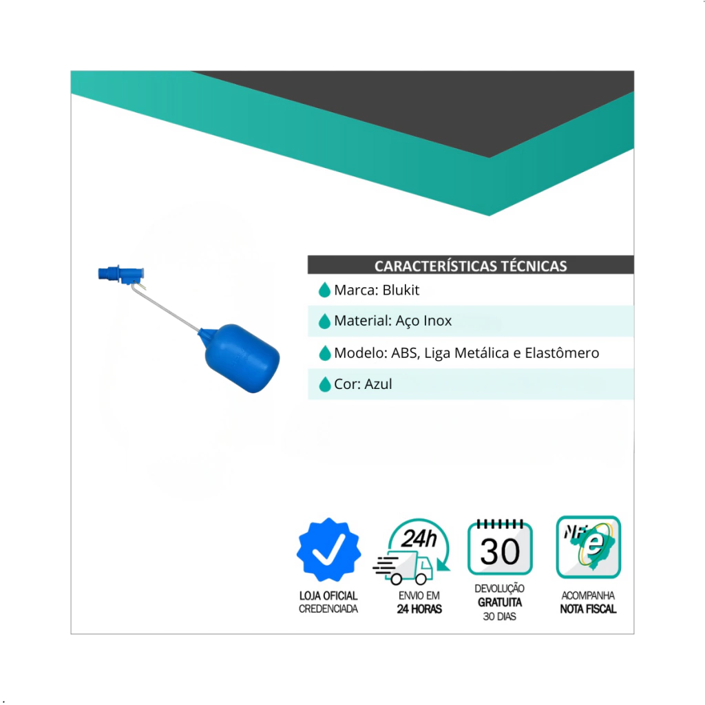 A torneira de boia da Blukit foi desenvolvido em ABS, ligas metálicas e elastômero. Ela serve para sinalizar o baixo nível de água no reservatório. Possui alto vazão, é um produto simples e funcional, além disso pode ser utilizado em lugares expostos a luz solar pois possui proteção UV.