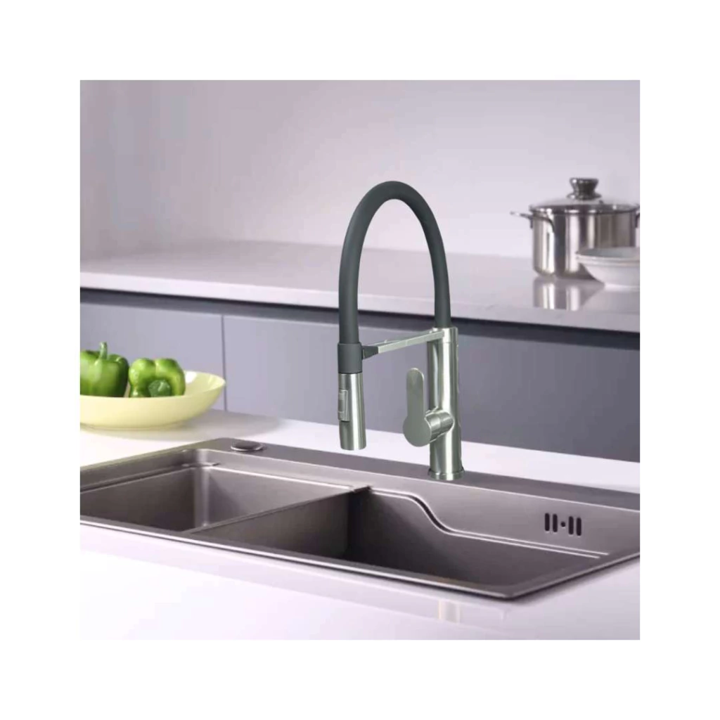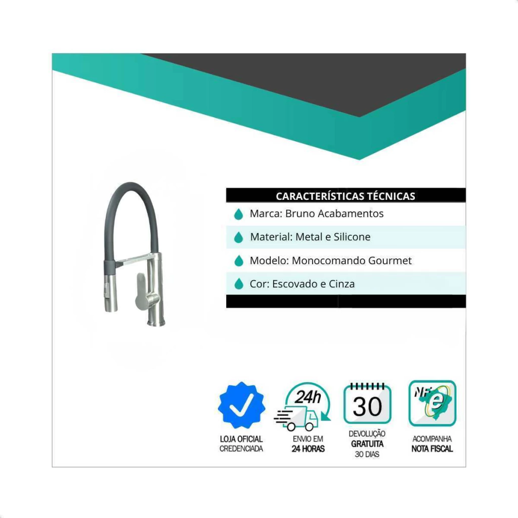 Torneira Gourmet Flexível Monocomando para Cozinha Dubai 2 Jatos Bancada Escovada/Cinza