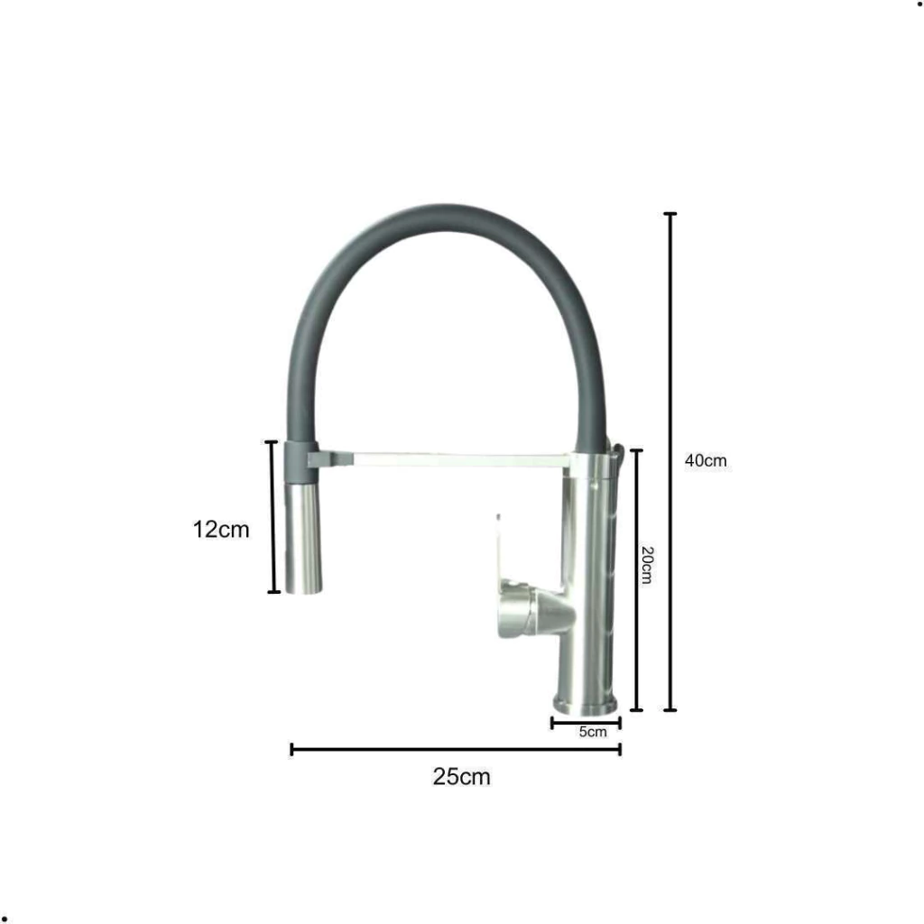 A torneira Dubai, uma exclusividade da Bruno Acabamentos, é confeccionada em metal com borracha de silicone e chega para transformar seu ambiente. Ela possui dois tipos de jato: um concentrado e um distribuído, facilmente alternados por um botão localizado na bica. O grande diferencial dessa torneira é o imã que mantém a bica firmemente fixada ao corpo, além de um cano flexível que permite alcançar locais de difícil acesso. Sua altura total é de 40 cm, com o corpo medindo 25 cm de largura, e a rosca de instalação tem 4 cm de comprimento. O produto vem com as mangueiras inclusas.