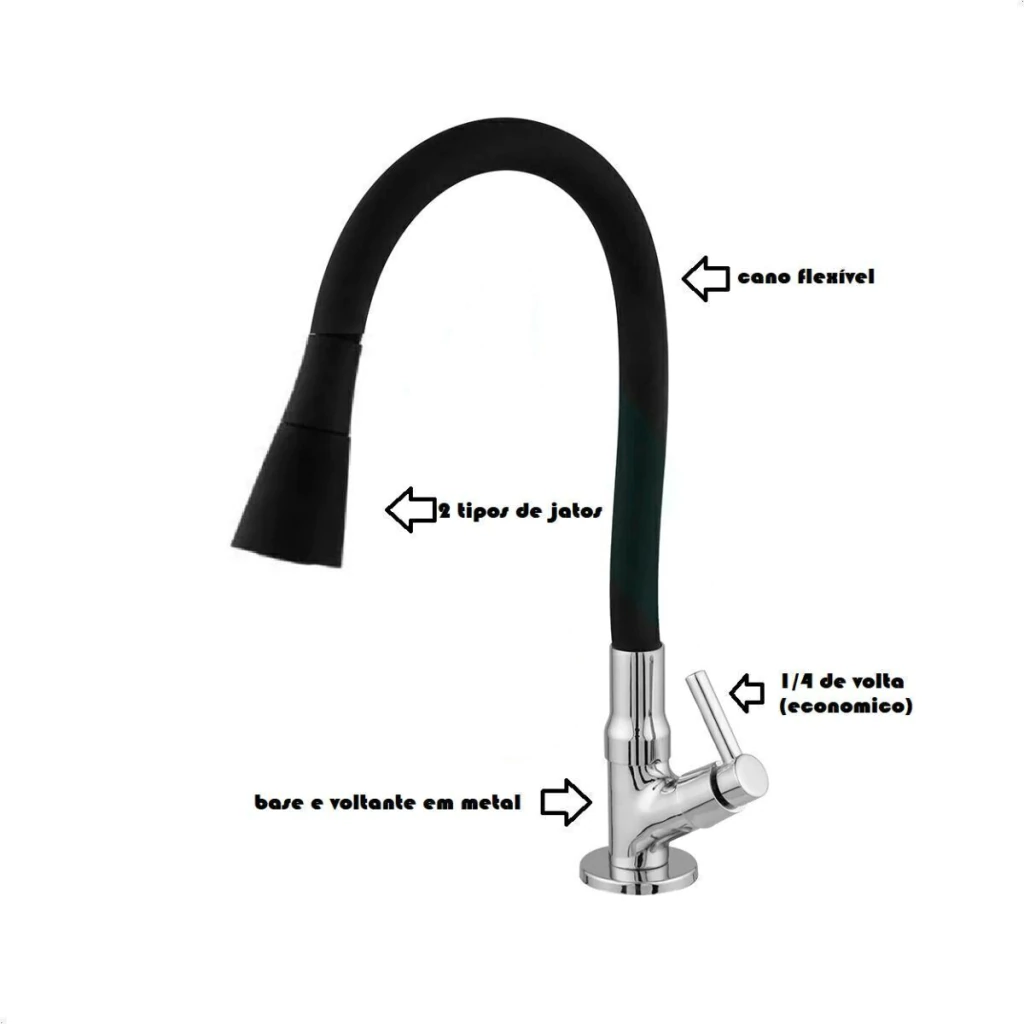 - 01 Torneira Gourmet Flexível Cozinha Luxo Alta 2 Jatos Preta