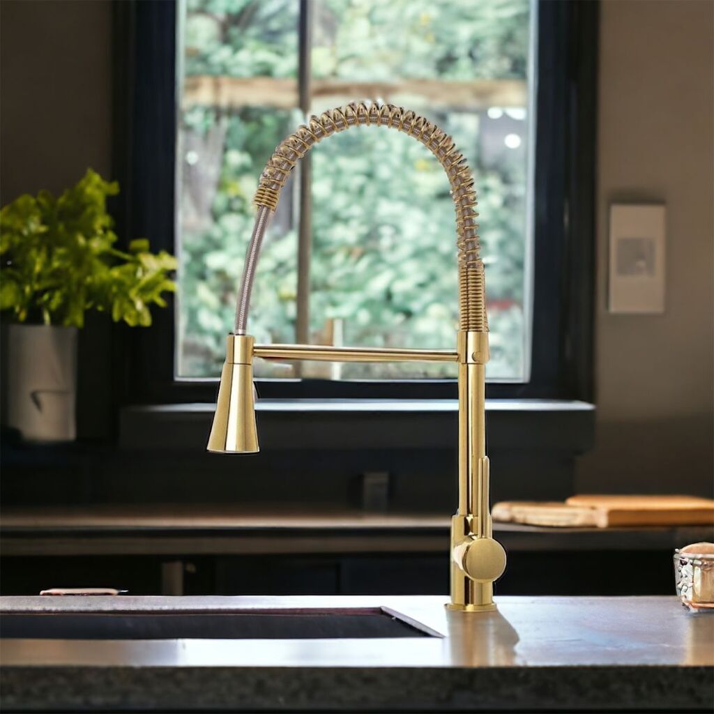 Torneira Gourmet Monocomando 1 Saída Redonda com Mola 50cm Dourada