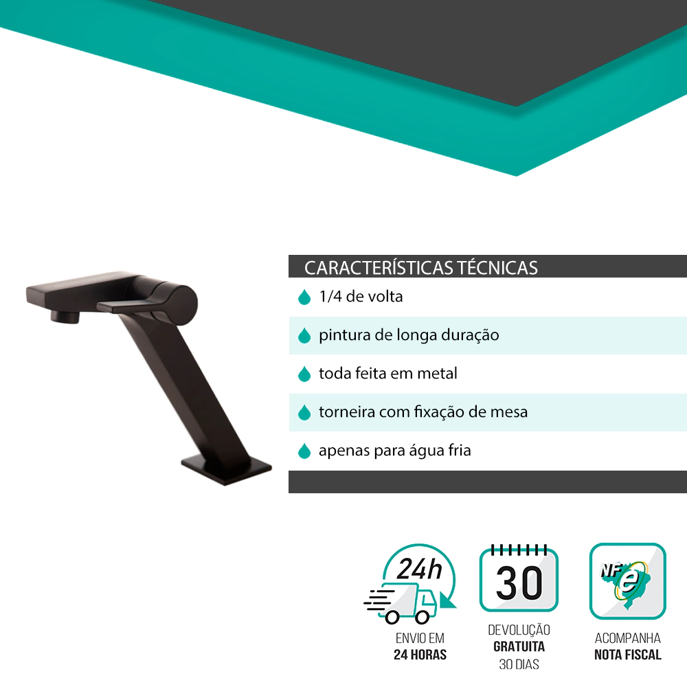 Mecanismo: Cartucho cerâmico de alta durabilidade (200.000 ciclos) 1/4 volta;
