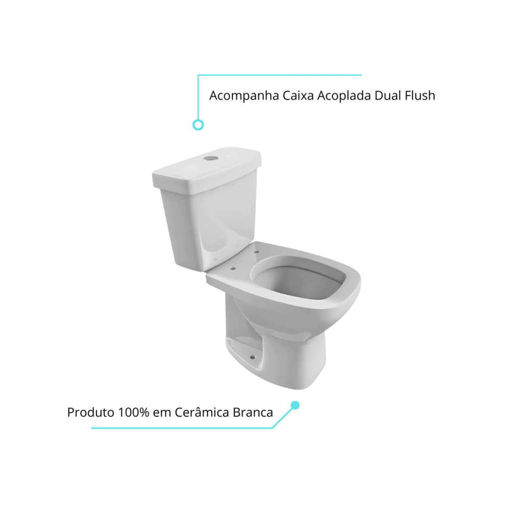 - 01 Vaso Sanitário Caixa Acoplada Dual Flush Amarílis - Branco